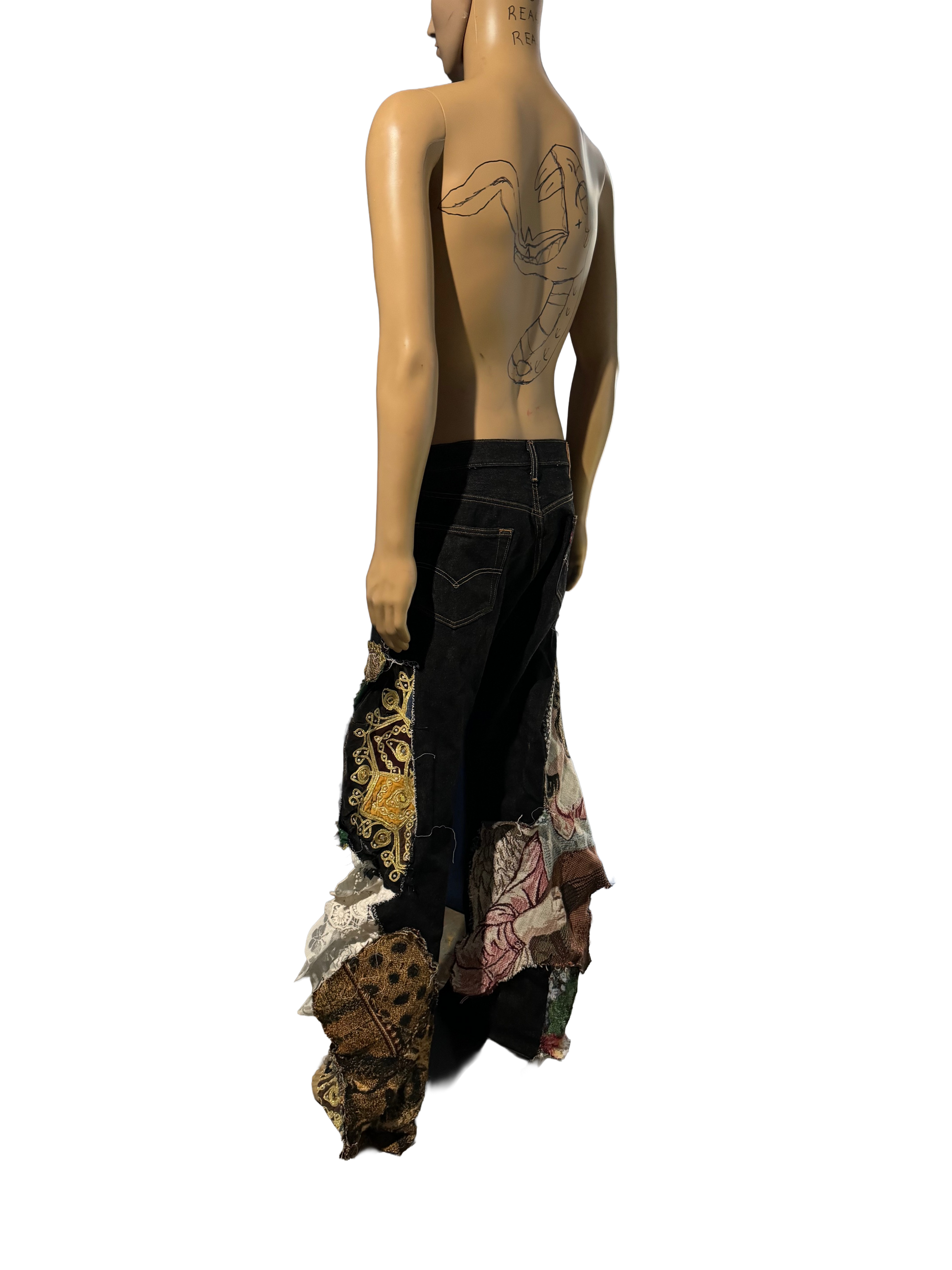 Custom sewn pants with unique design
